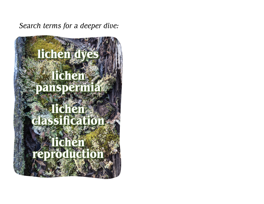 A lichen is a symbiotic colony of algae, fungi, bacteria and sometimes other microorganisms. (It’s an algae & fungi sandwich!)