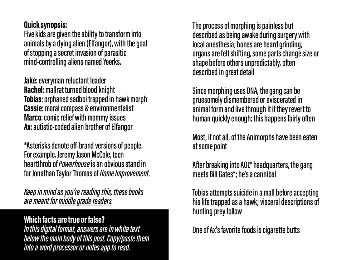 For your own sanity, don’t bother with the choose-your-own-adventure books called Alternamorphs. It seems like some Scholastic intern was forced to skim a few books and throw something together.